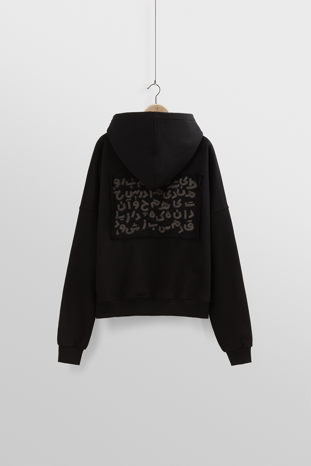 - پشت هودی گلدوزی حروف فارسی بصورت بزرگ انجام شده است.