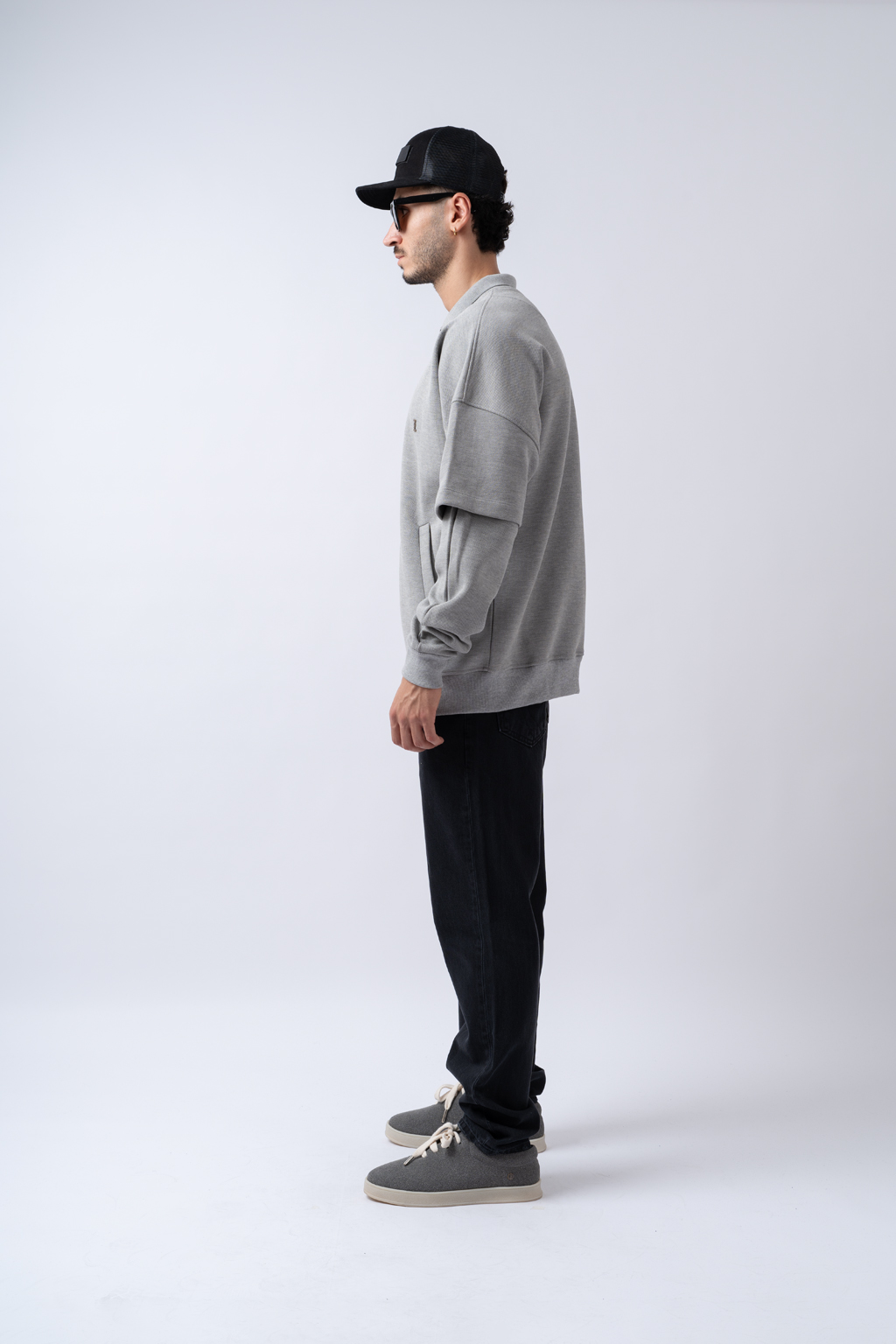 • یقه و قسمت پایین محصول با کشباف طراحی و اجرا شده و بر روی گردن زیپ فلزی برای رگلاژ اجرا شده است.