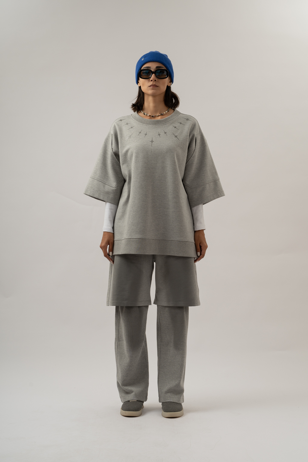 • بر روی پیش و پشت شلوار چاپ با تکنیک اسپری (طرح رادو) انجام شده است.