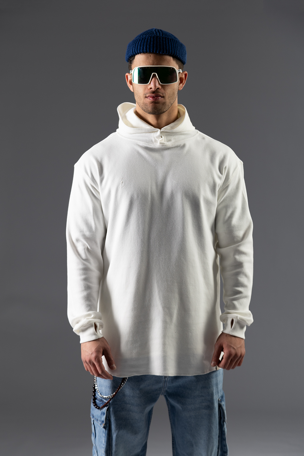 تیشرت آستین بلند کلاهدار سفید