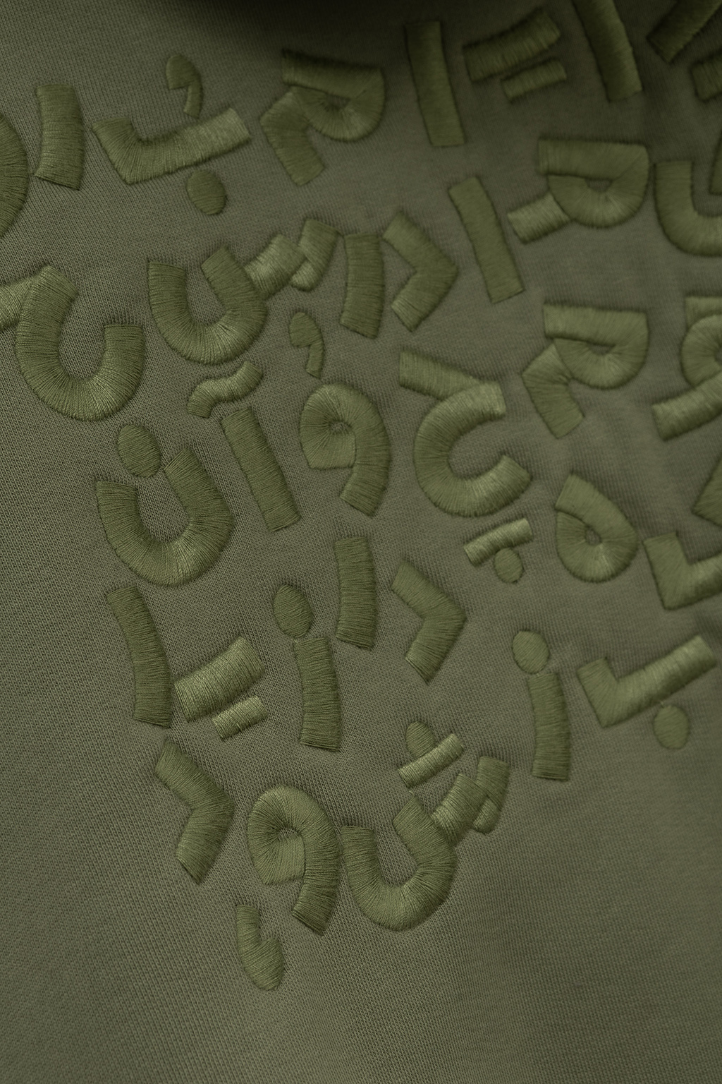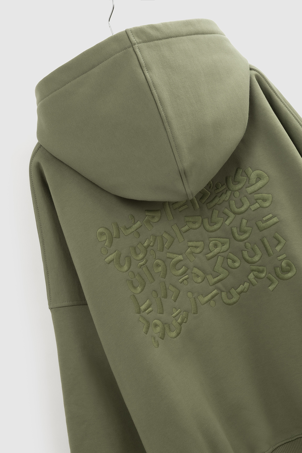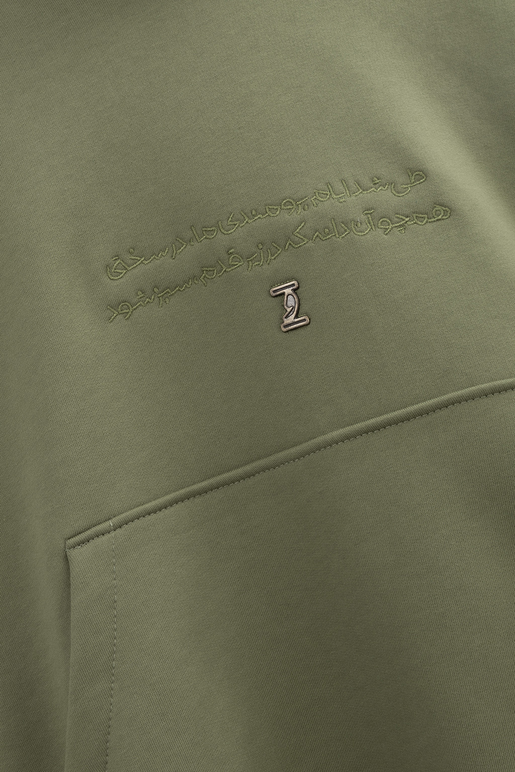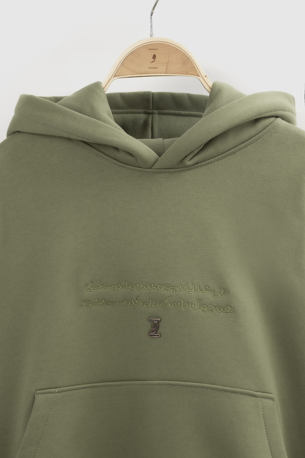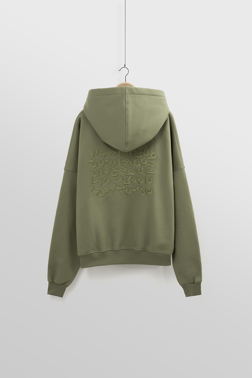 - پشت هودی گلدوزی بزرگ حروف فارسی انجام شده است.