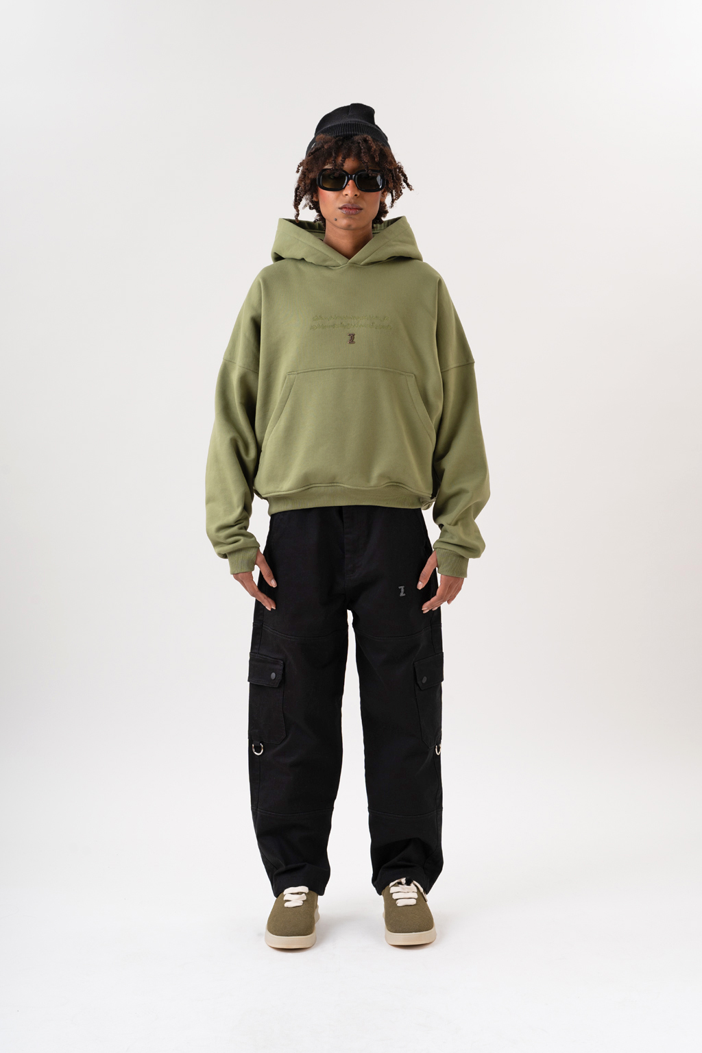 - هودی دارای جیب خرگوشی روی پیش کار است.