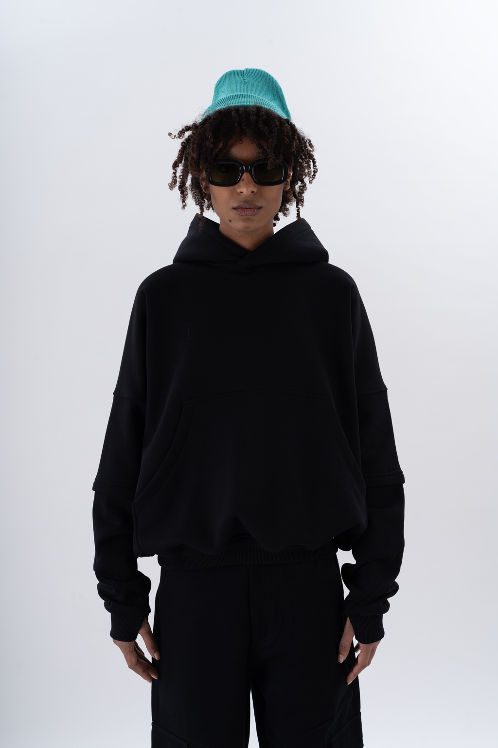 • هودی کمبو تولید شده با پارچه دورس سه نخ خارخورده ضخیم تولید شده است.