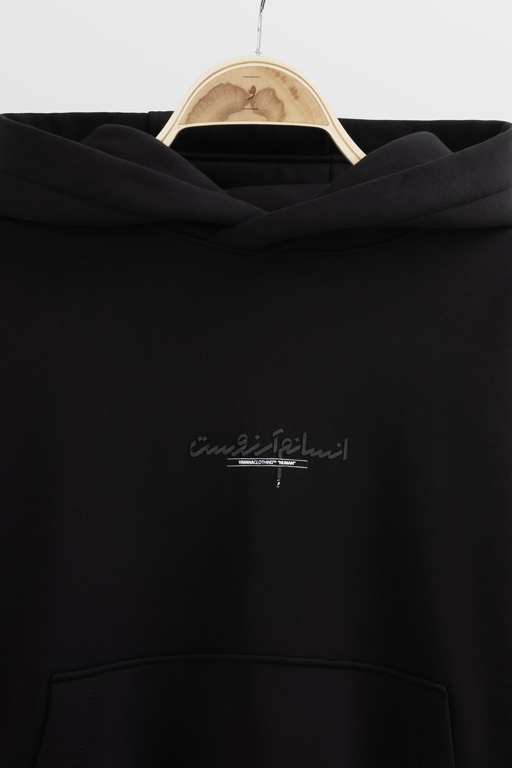 - هودی کمبو انسان تولید شده با پارچه دورس سه نخ خارخورده ضخیم تولید شده است.