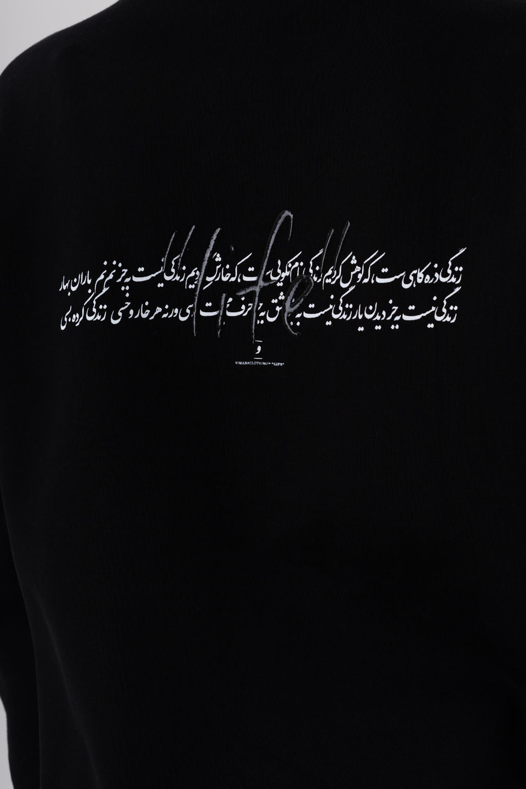 • پشت پولیور دو رنگ چاپ سیلک اسکرین متن فارسی چاپ شده است.