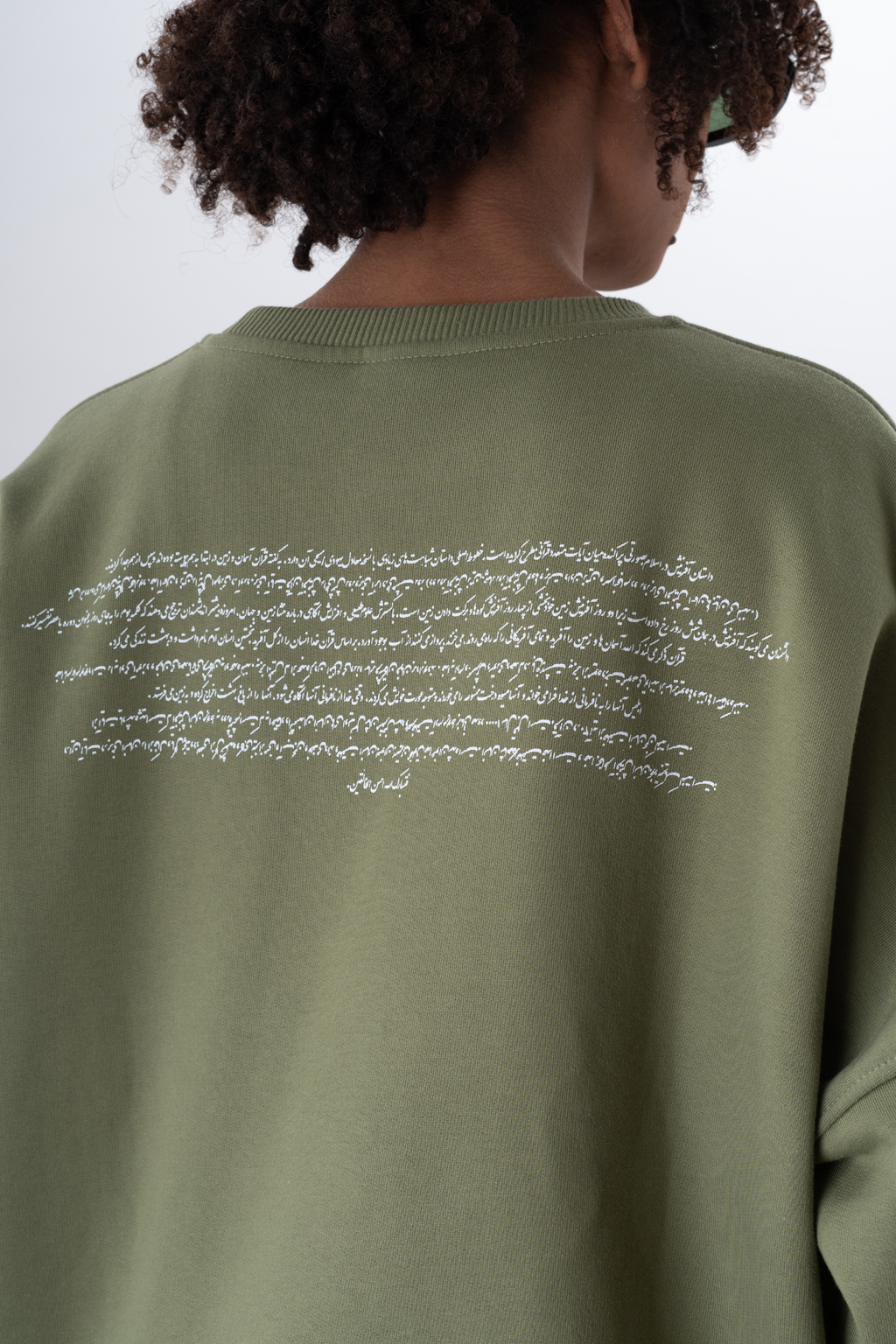 - پشت پولیور تک رنگ چاپ سیلک اسکرین تک رنگ، متن فارسی چاپ شده است.