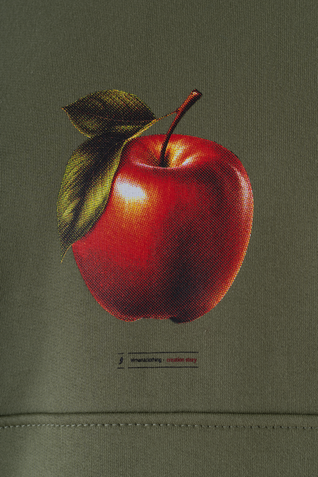 - پیش پولیور چاپ سیلک اسکرین طرح سیب چاپ شده است.