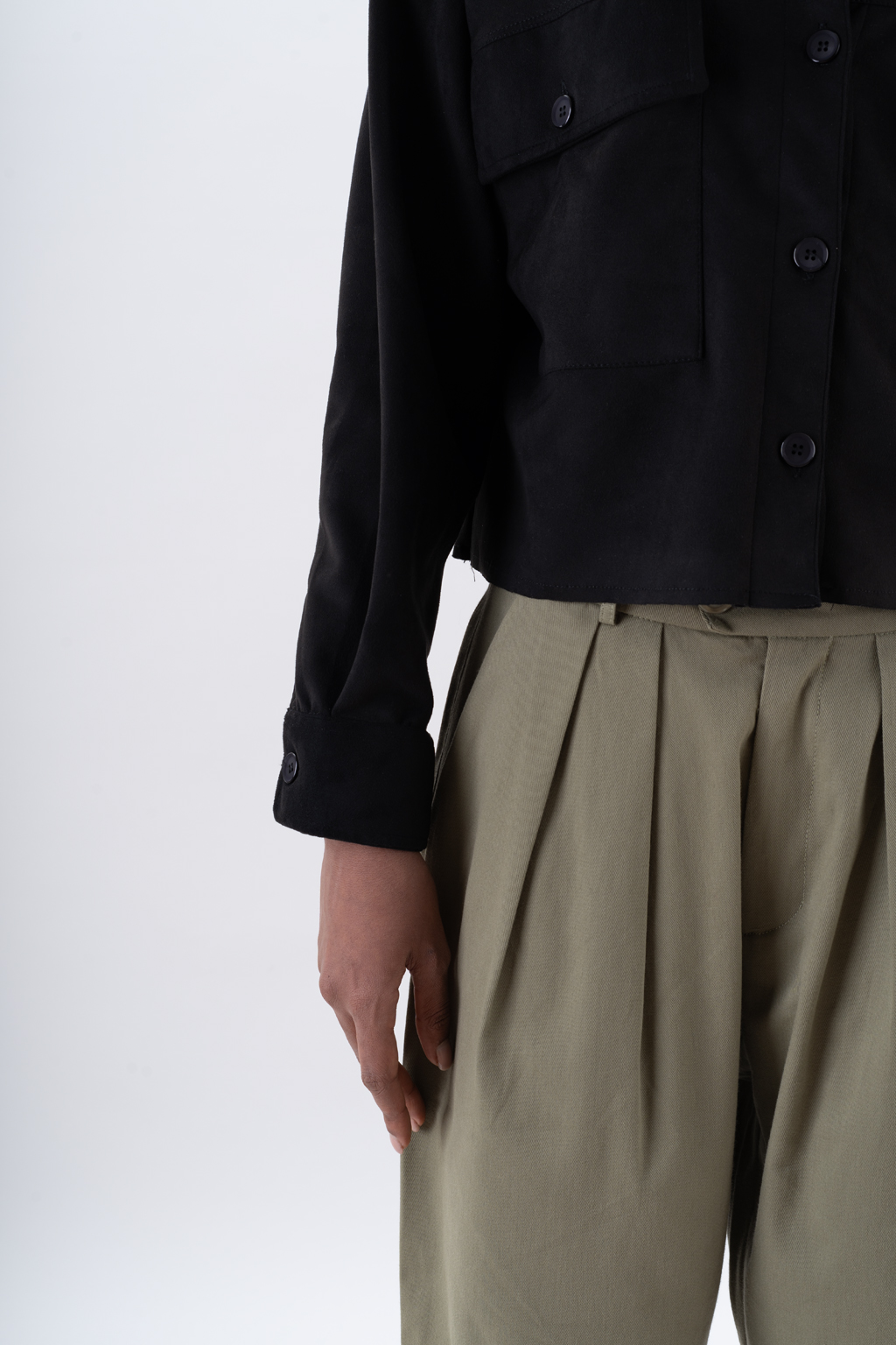 مدل این محصول کت کراپ بوده و قواره کوتاه دارد.