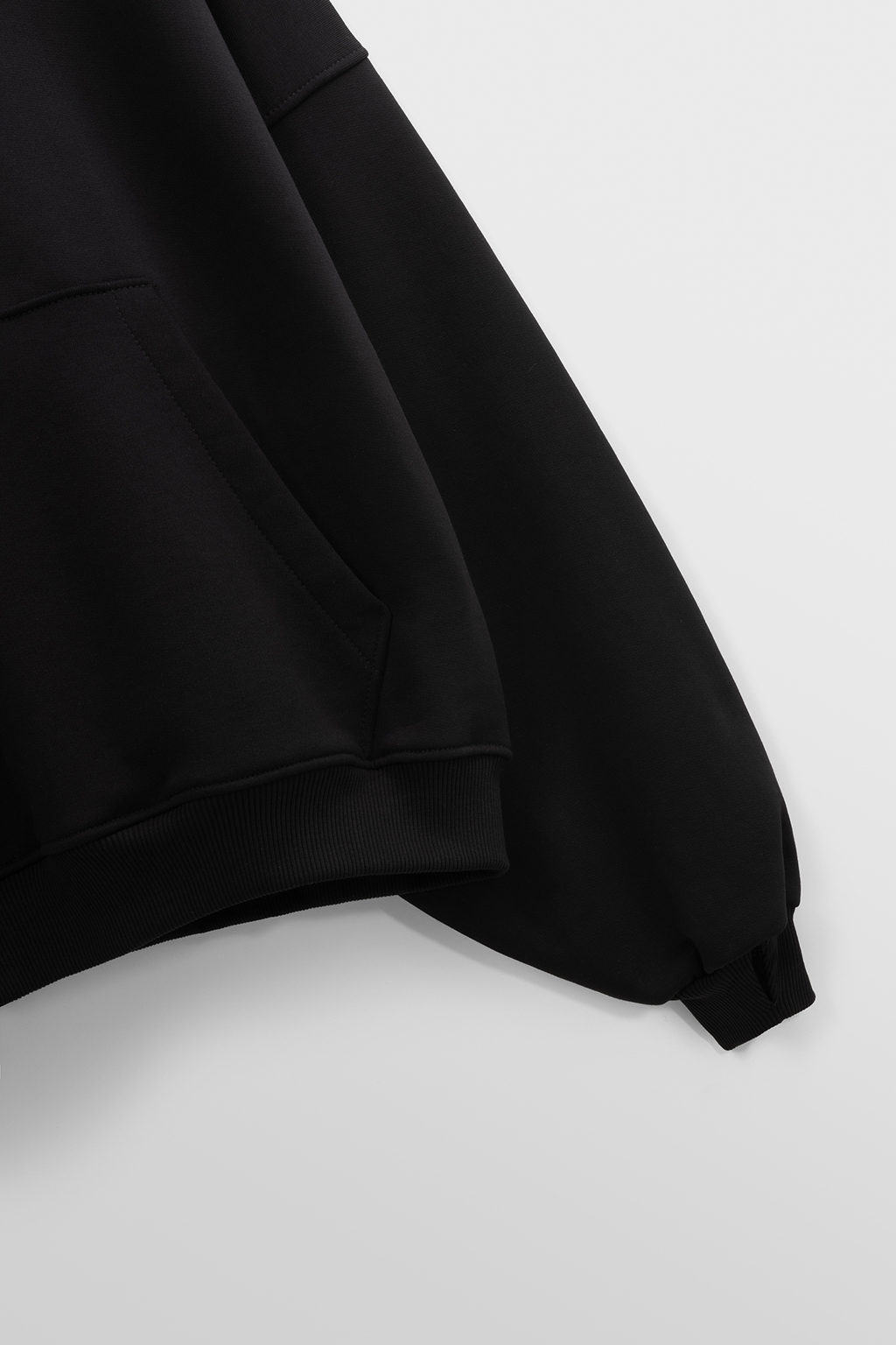 - طراحی سرآستین هودی بهصورت کشی همراه با فینگر انجام شده تا آستین روی دست ثابت بماند و در استفاده روزمره یا فعالیت، جابهجا نشود.