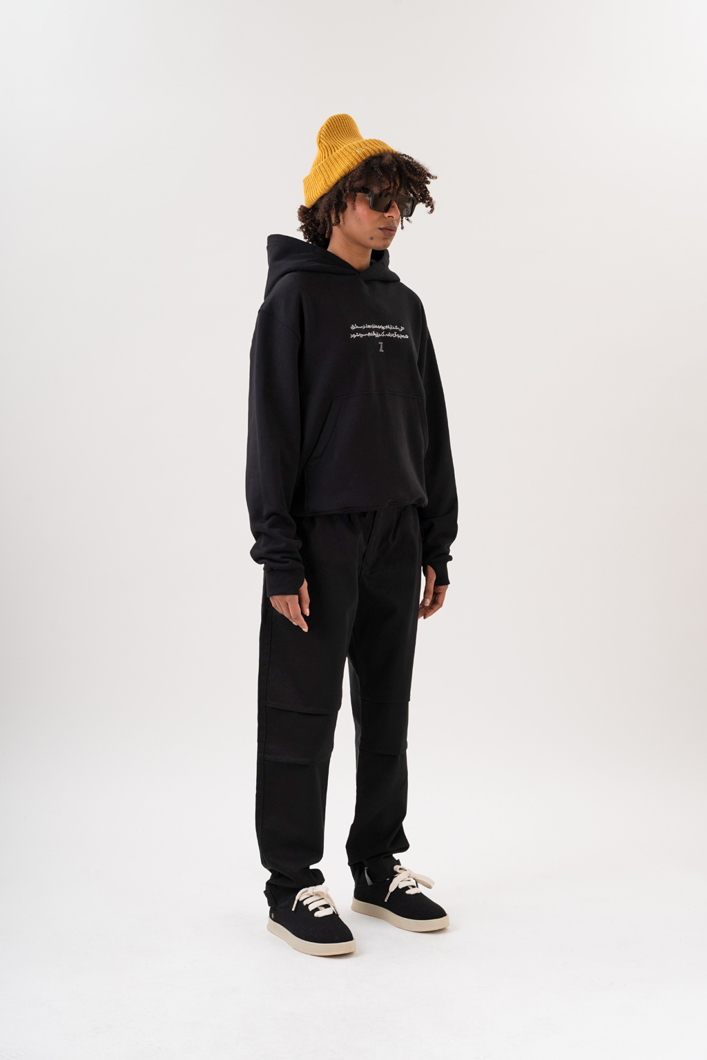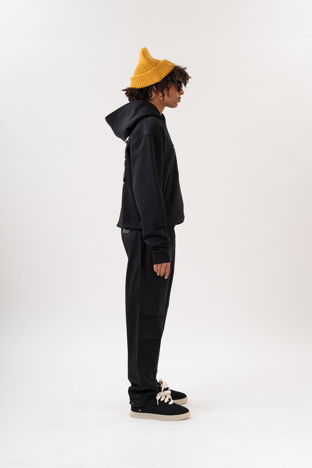- هودی دارای جیب خرگوشی روی پیش کار است.