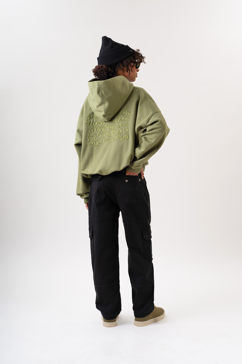 - هودی دارای جیب خرگوشی روی پیش کار است.