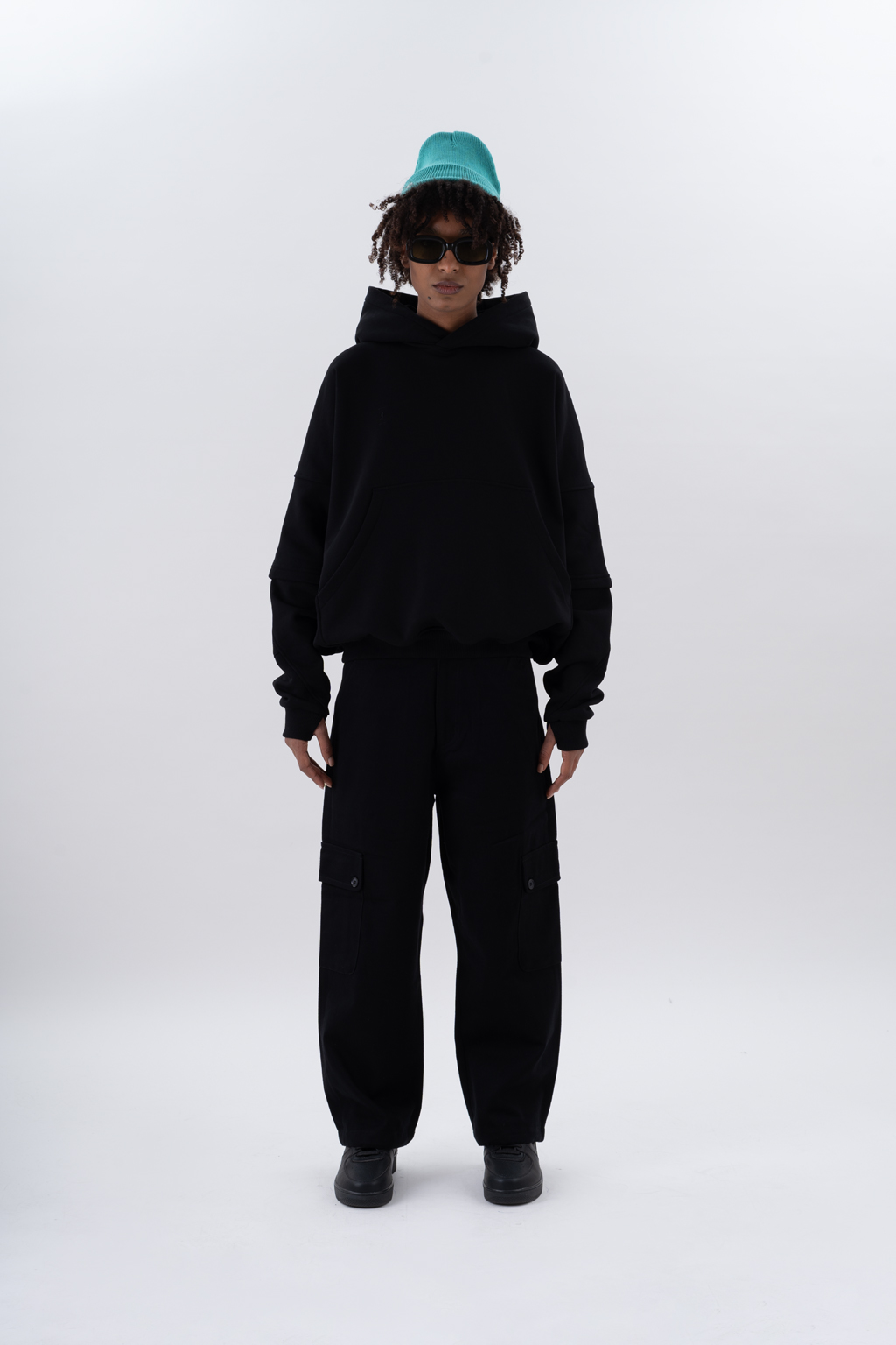 • هودی کمبو تولید شده با پارچه دورس سه نخ خارخورده ضخیم تولید شده است.