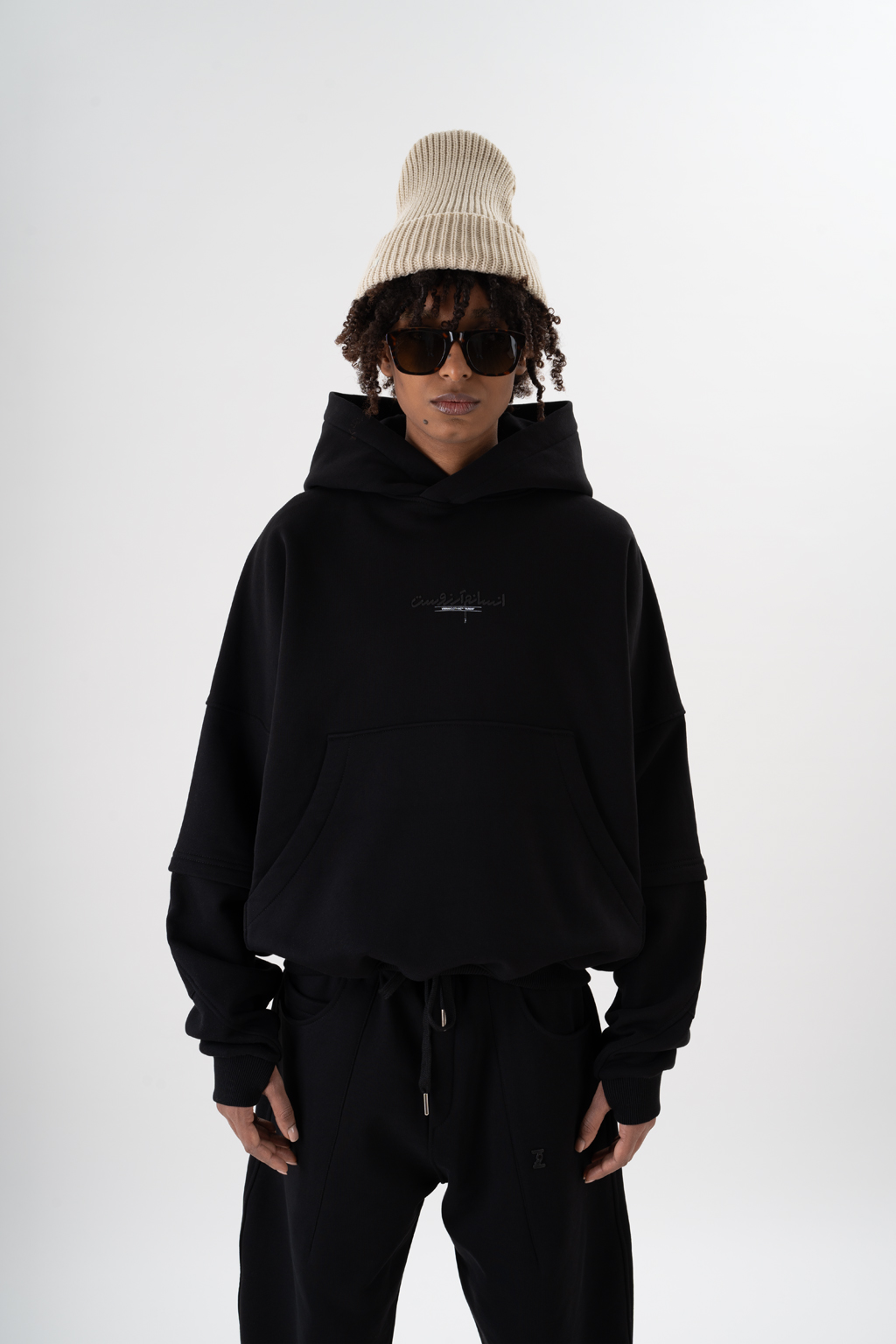 - هودی کمبو انسان تولید شده با پارچه دورس سه نخ خارخورده ضخیم تولید شده است.
