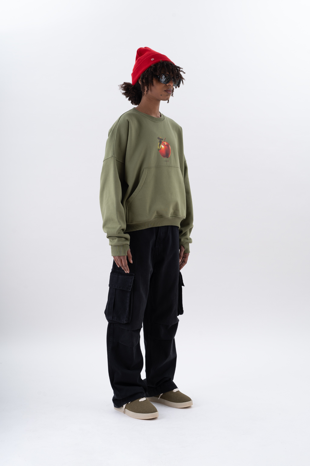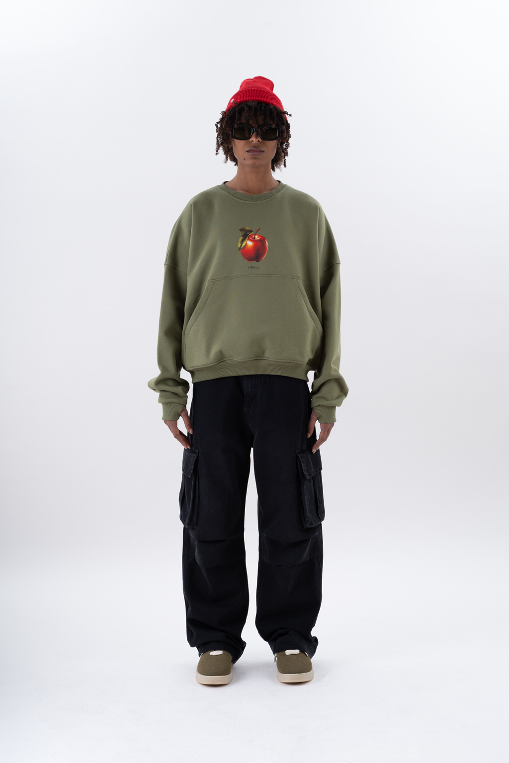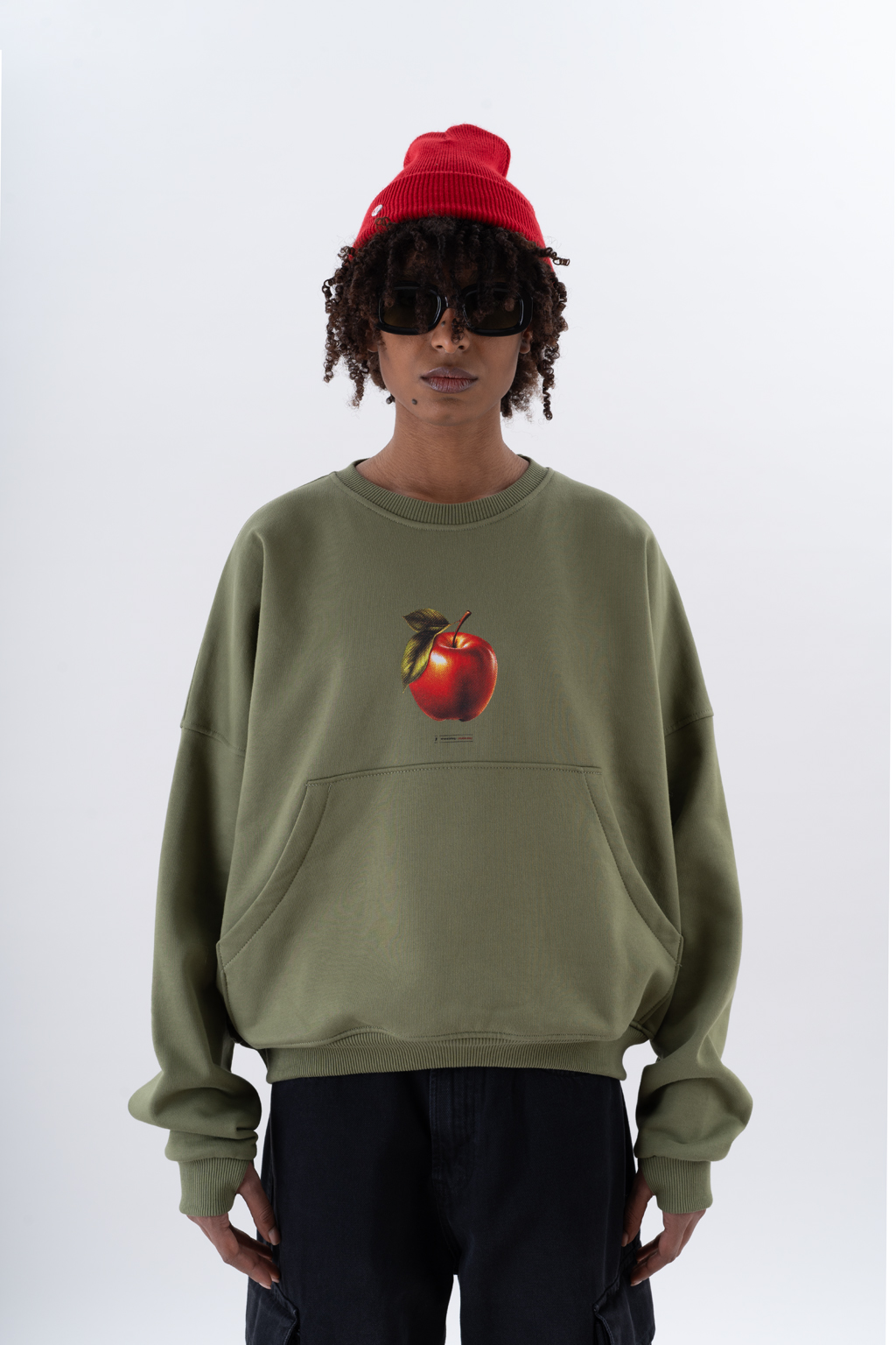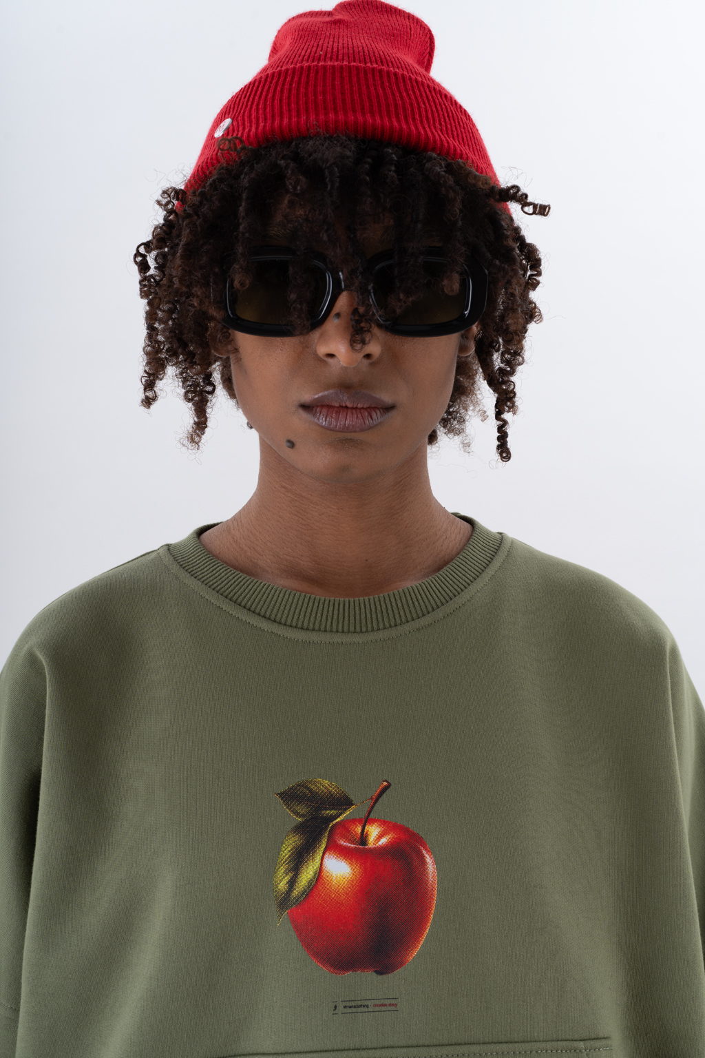 - پیش پولیور چاپ سیلک اسکرین طرح سیب چاپ شده است.